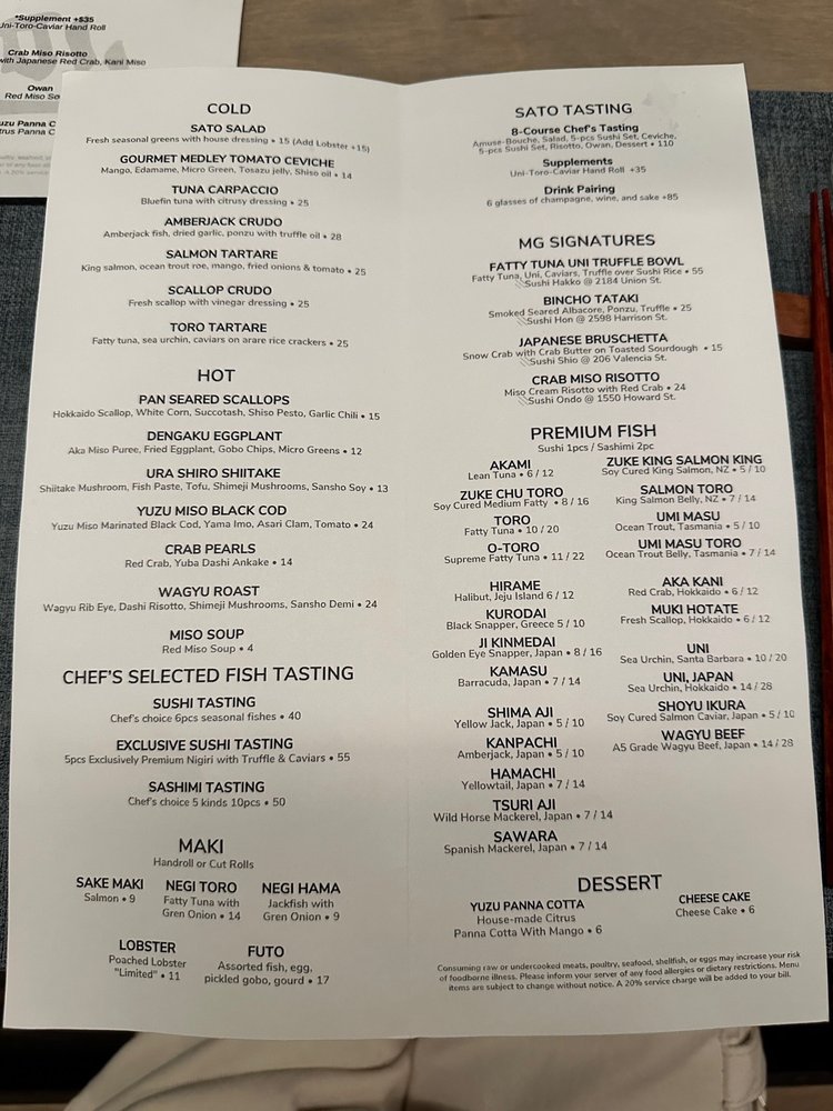 Welcome to Sushi Sato, an exquisite Japanese bar located at 1122 Post St, San Francisco. This culinary gem offers a menu brimming with innovative dishes designed to delight the senses.